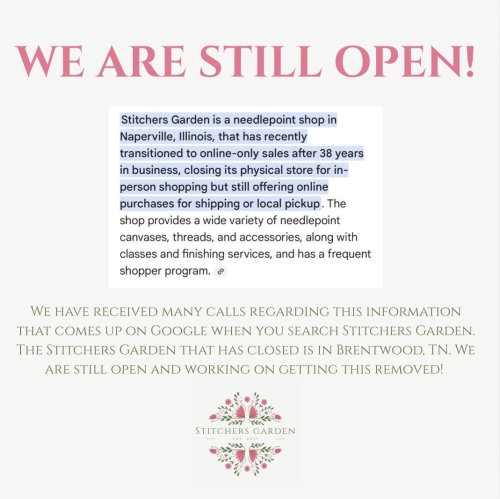 Hello Stitchers - We are not closing our in-store shopping!